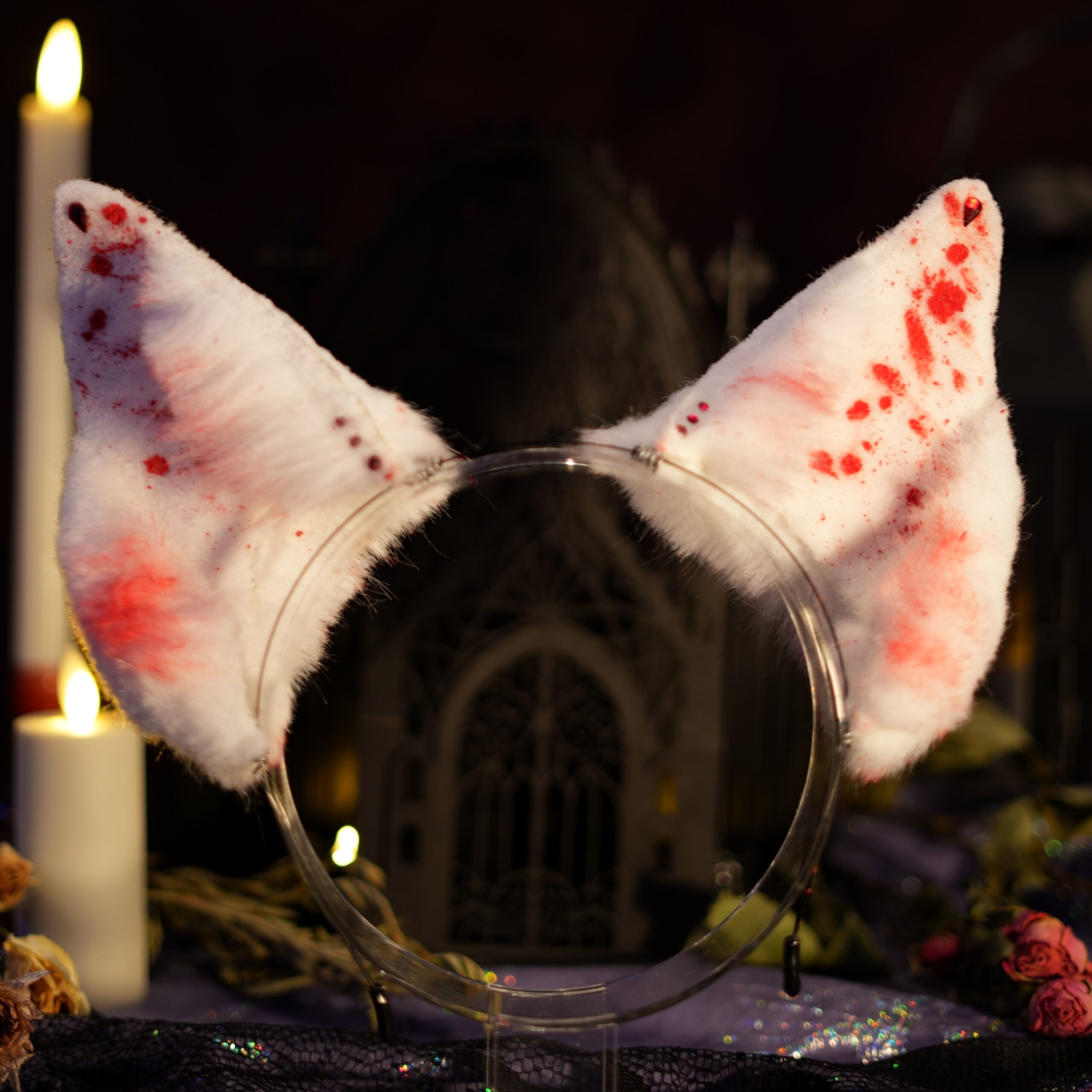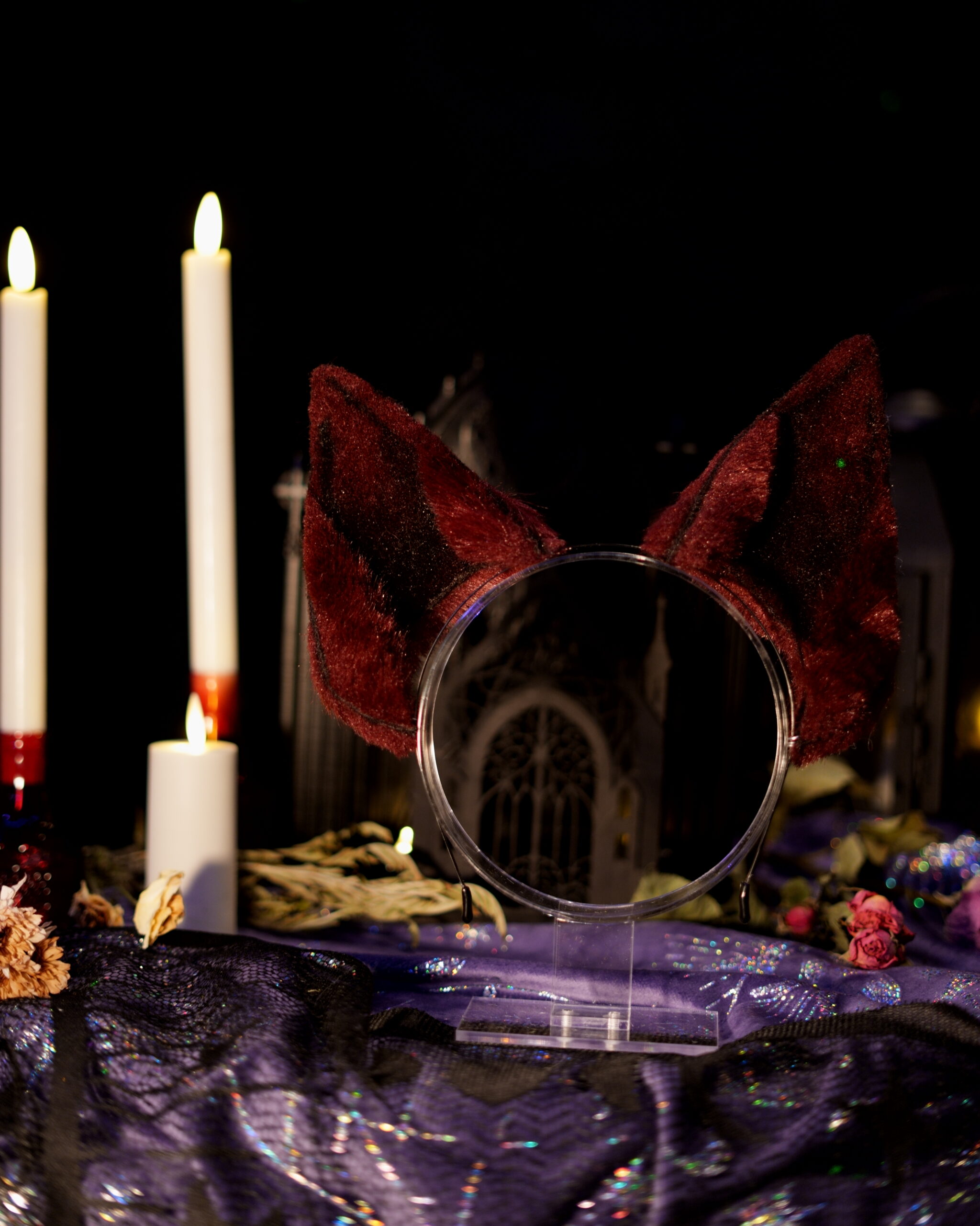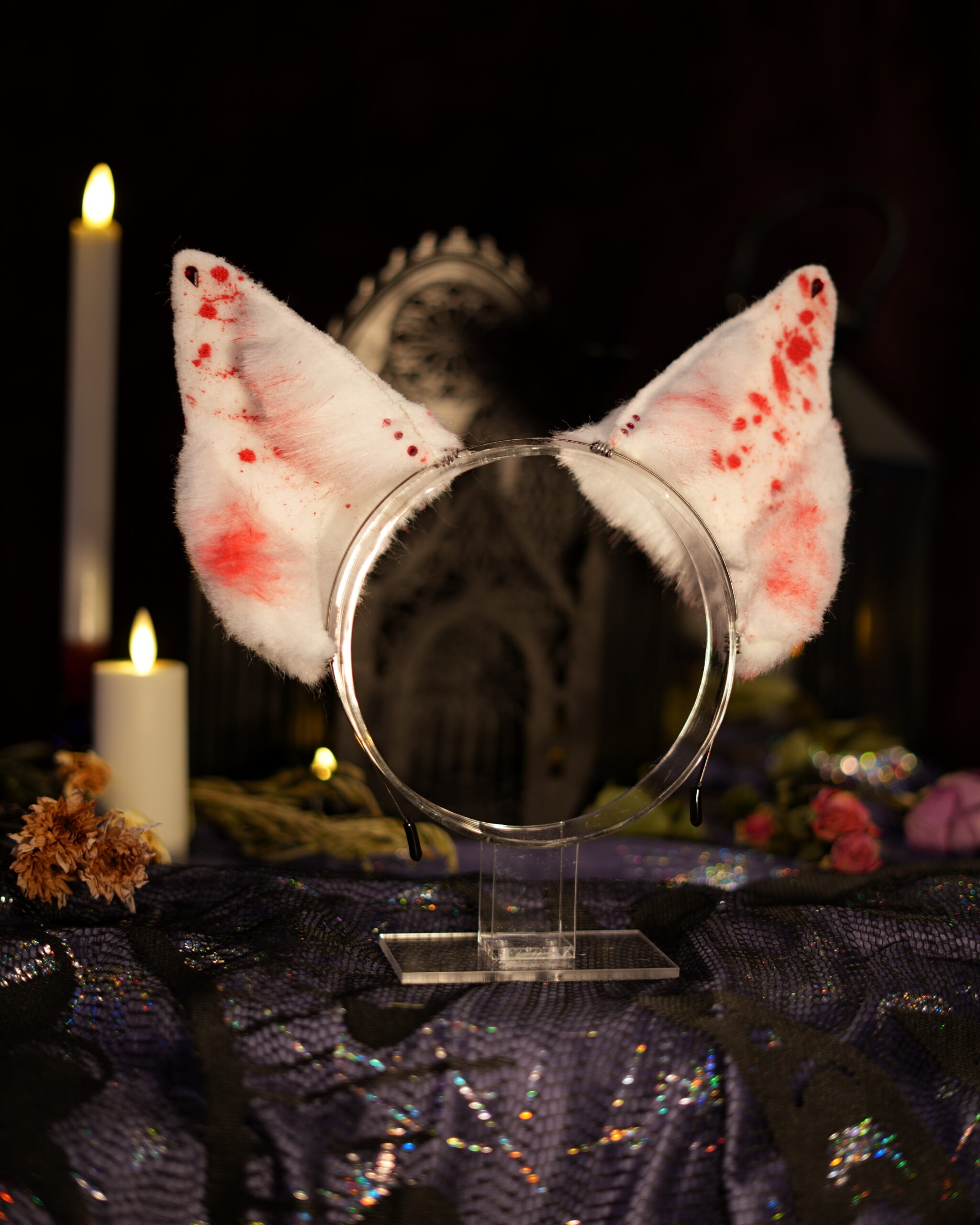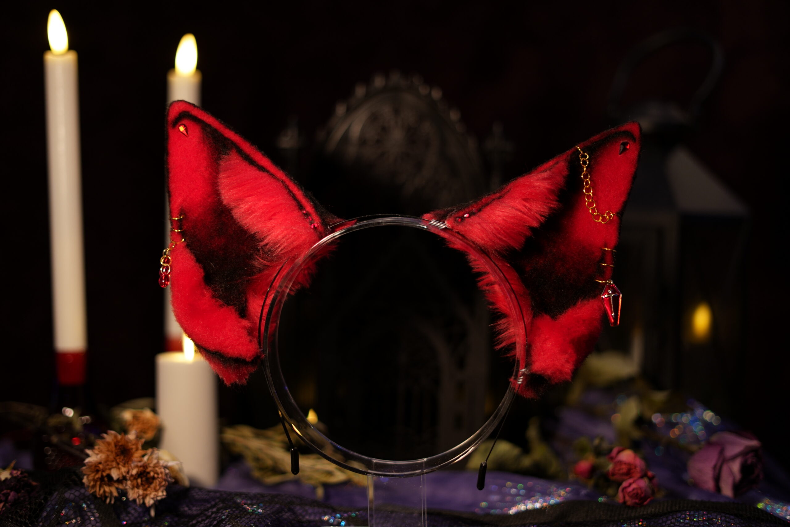 “Canis Familiaris. Although canines are a less common choice for a witch’s familiar, they have been known to be popular among the fringe covens. Make no mistake, these are not man’s best friend. They listen only to the witch to whom they are bound.” Hand-crafted ears by Azelian Artist Bruja La Loba in a variety of styles. The Hex Canino ears are designed to be canine, taller in size to be seen above the crowd. A perfect accessory for those that wish to stand out at a party. Each set of ears is fully pose-able, with fur hand-sewn over a wire frame allowing the wearer to bend the ears into a variety of shapes. The lightweight headband can be disguised under your hair, and rubber tips are included for comfort to ensure you can wear your ears for hours at a time with no discomfort. Hand-airbrushed patterns bring the ears to life and the addition of small gems and charms make each set unique. No two pairs of ears are exactly the same. These ears are crafted regularly in an array of styles so you can select the perfect pair for whatever occasion you desire. Certain seasonal styles may not yet be listed. Please feel free to contact Bruja La Loba on instagram, or reach out to Azelian Arts by email at Reks@azelianarts.com if you would like to see additional selections.