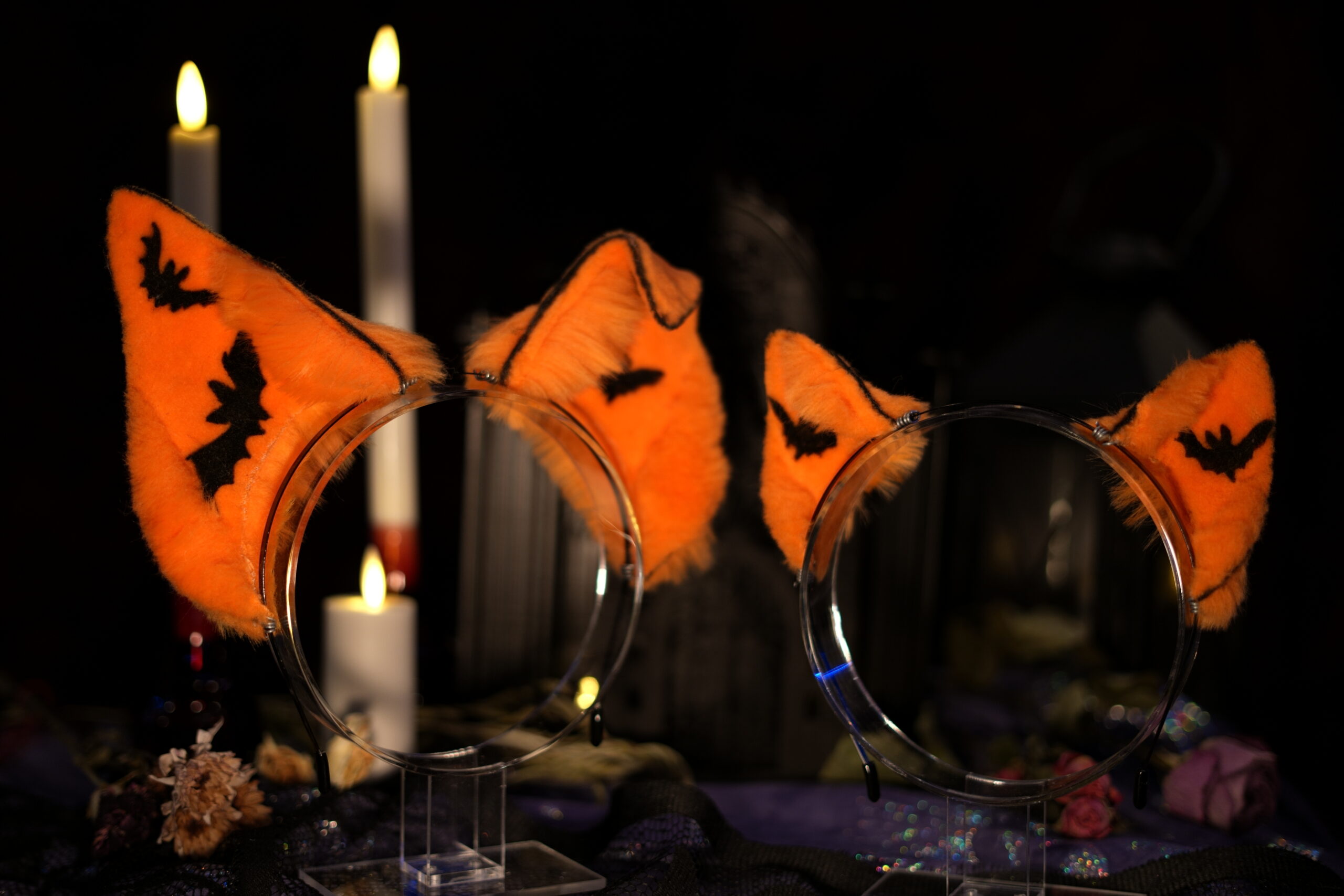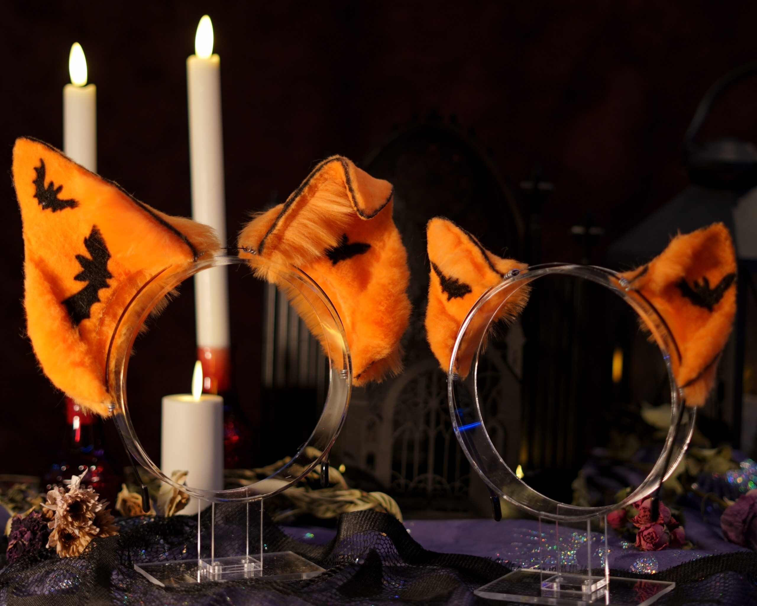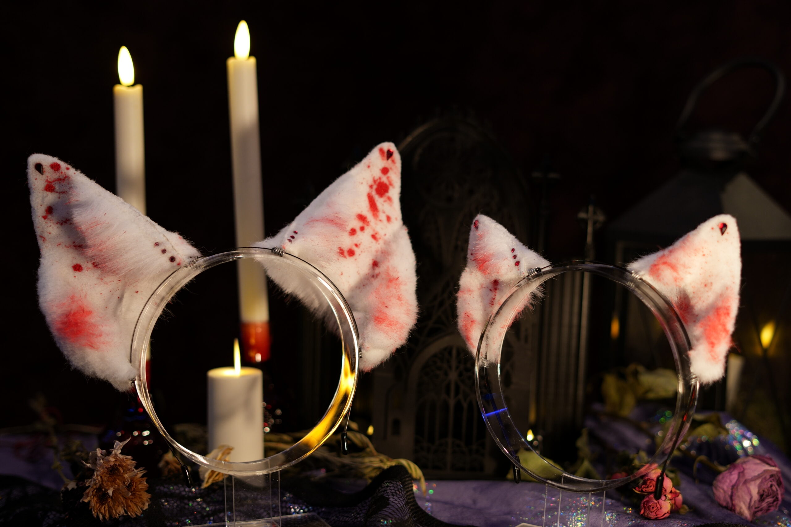 “Canis Familiaris. Although canines are a less common choice for a witch’s familiar, they have been known to be popular among the fringe covens. Make no mistake, these are not man’s best friend. They listen only to the witch to whom they are bound.” Hand-crafted ears by Azelian Artist Bruja La Loba in a variety of styles. The Hex Canino ears are designed to be canine, taller in size to be seen above the crowd. A perfect accessory for those that wish to stand out at a party. Each set of ears is fully pose-able, with fur hand-sewn over a wire frame allowing the wearer to bend the ears into a variety of shapes. The lightweight headband can be disguised under your hair, and rubber tips are included for comfort to ensure you can wear your ears for hours at a time with no discomfort. Hand-airbrushed patterns bring the ears to life and the addition of small gems and charms make each set unique. No two pairs of ears are exactly the same. These ears are crafted regularly in an array of styles so you can select the perfect pair for whatever occasion you desire. Certain seasonal styles may not yet be listed. Please feel free to contact Bruja La Loba on instagram, or reach out to Azelian Arts by email at Reks@azelianarts.com if you would like to see additional selections.
