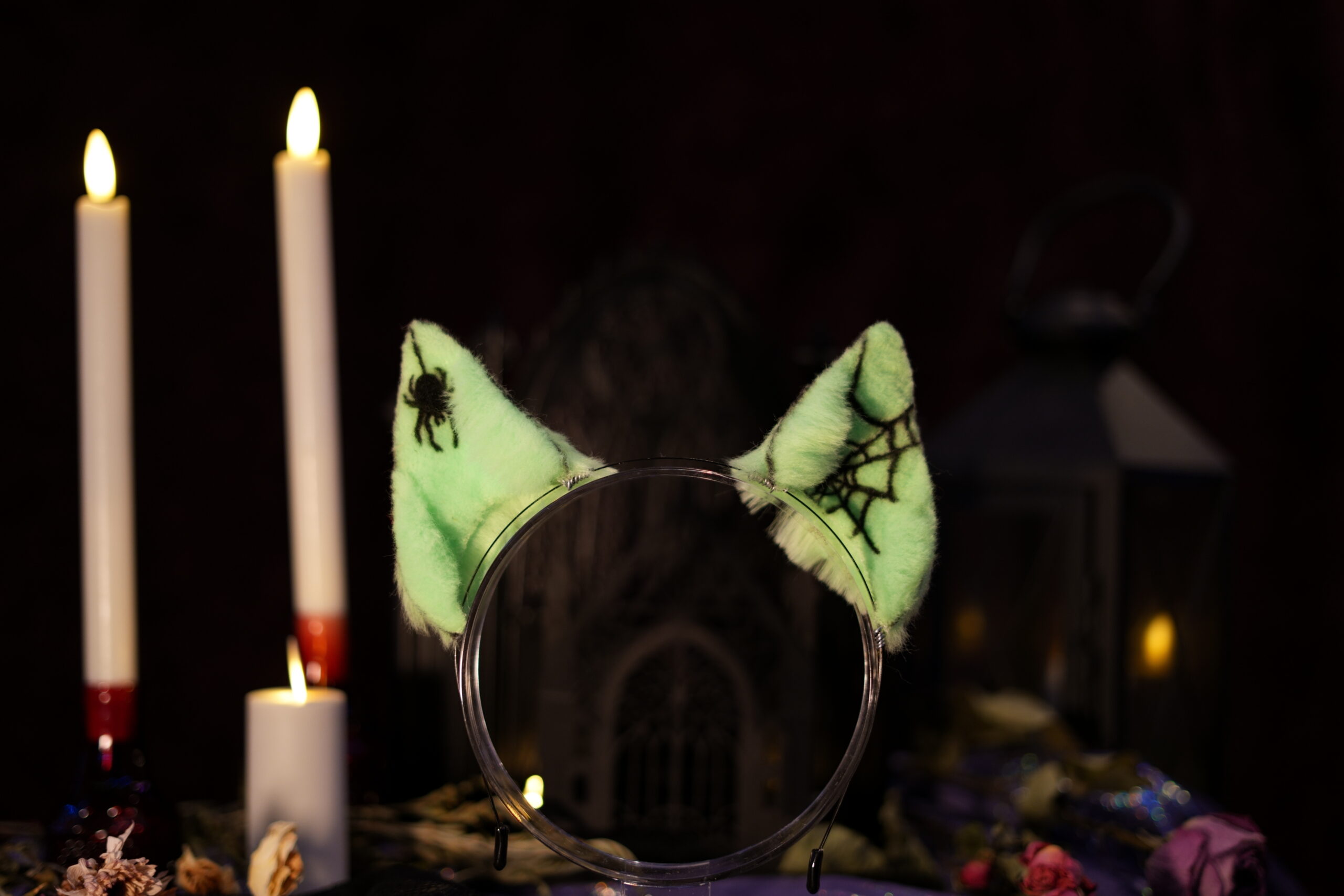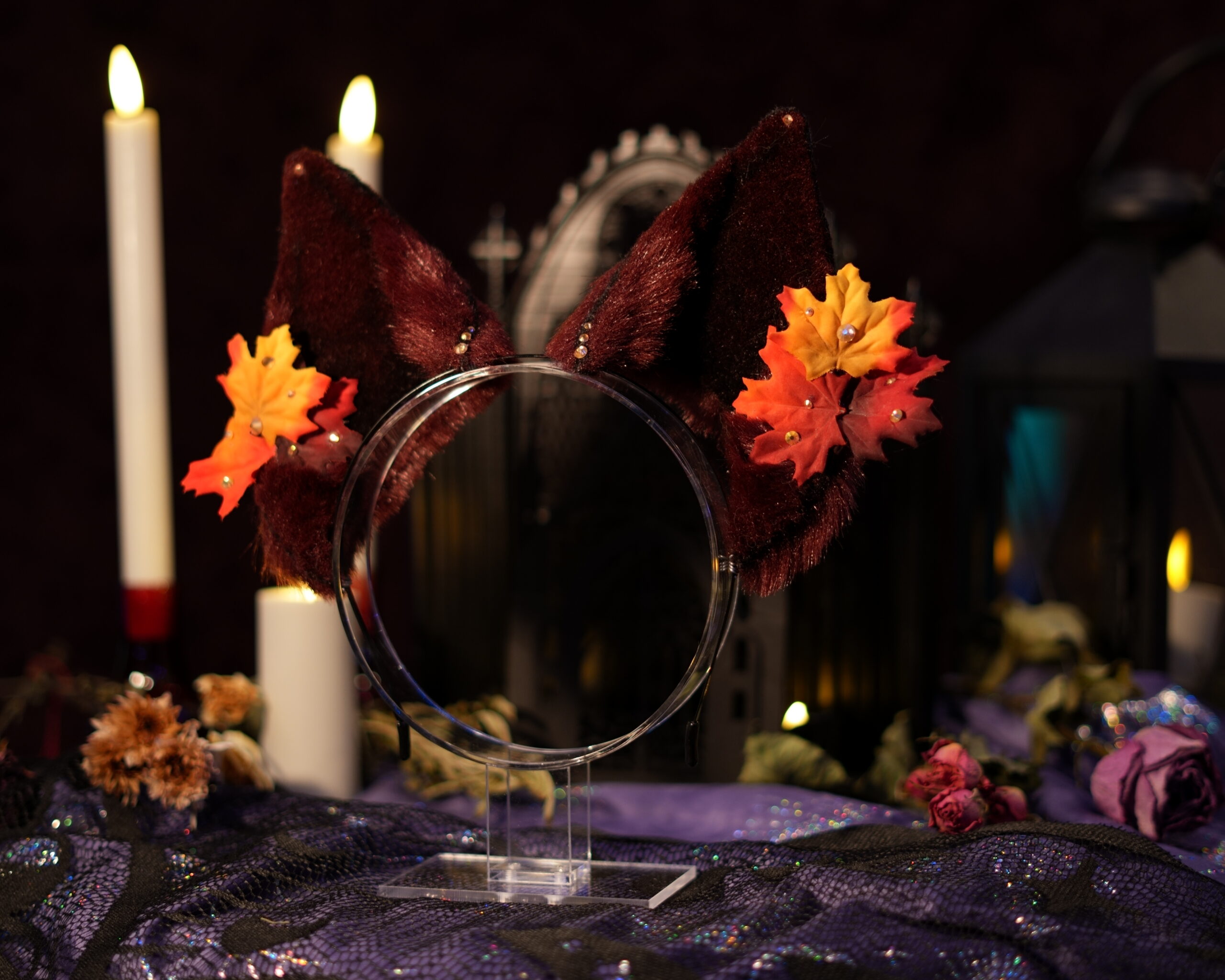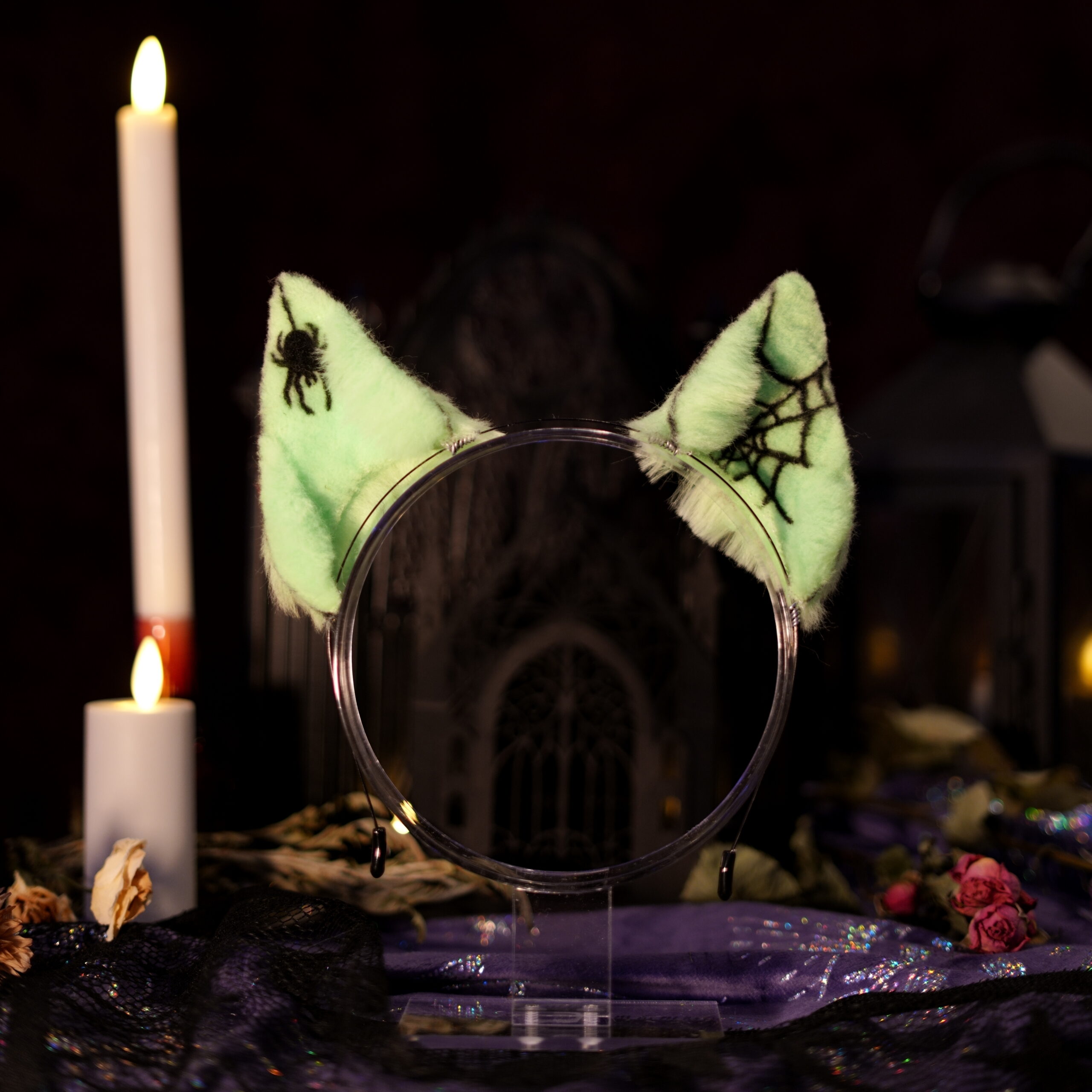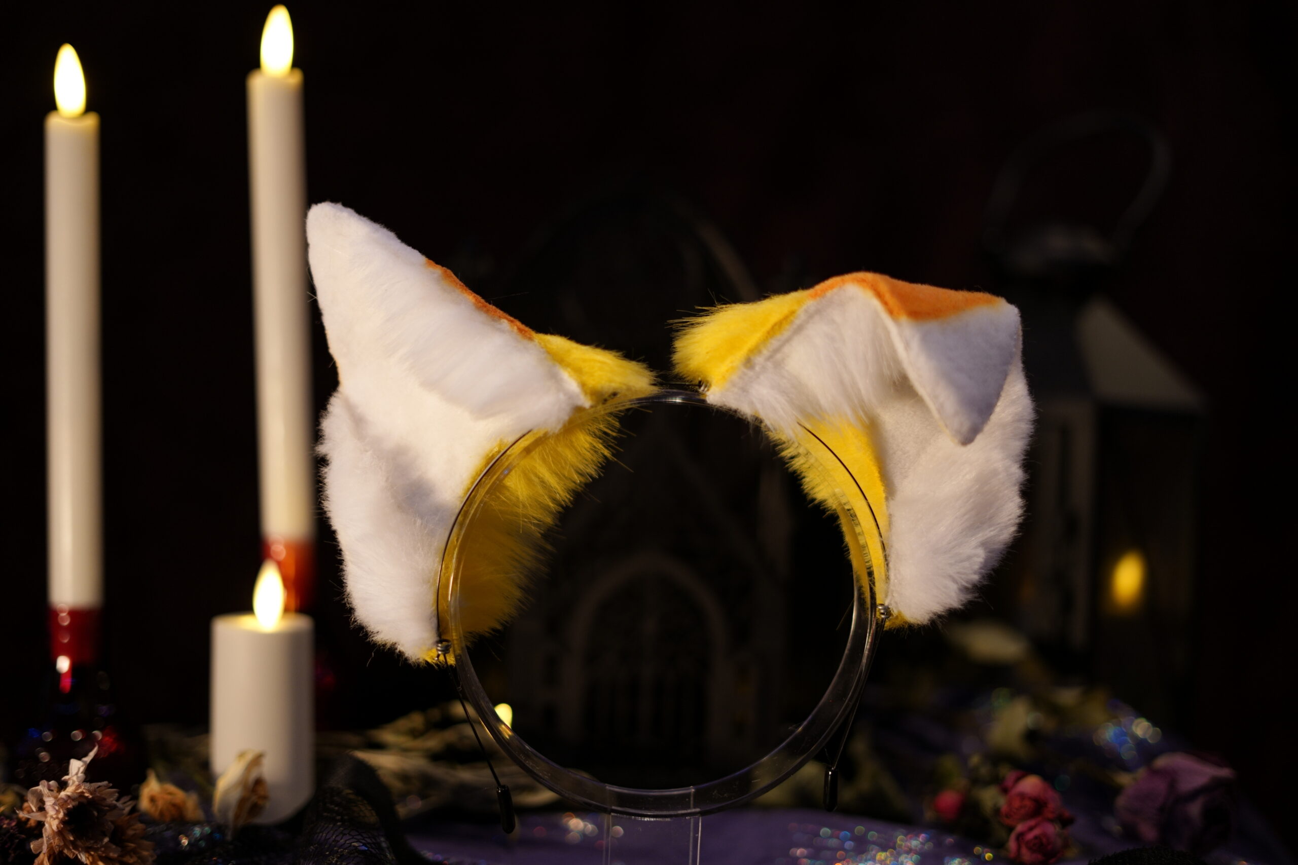 “Canis Familiaris. Although canines are a less common choice for a witch’s familiar, they have been known to be popular among the fringe covens. Make no mistake, these are not man’s best friend. They listen only to the witch to whom they are bound.” Hand-crafted ears by Azelian Artist Bruja La Loba in a variety of styles. The Hex Canino ears are designed to be canine, taller in size to be seen above the crowd. A perfect accessory for those that wish to stand out at a party. Each set of ears is fully pose-able, with fur hand-sewn over a wire frame allowing the wearer to bend the ears into a variety of shapes. The lightweight headband can be disguised under your hair, and rubber tips are included for comfort to ensure you can wear your ears for hours at a time with no discomfort. Hand-airbrushed patterns bring the ears to life and the addition of small gems and charms make each set unique. No two pairs of ears are exactly the same. These ears are crafted regularly in an array of styles so you can select the perfect pair for whatever occasion you desire. Certain seasonal styles may not yet be listed. Please feel free to contact Bruja La Loba on instagram, or reach out to Azelian Arts by email at Reks@azelianarts.com if you would like to see additional selections.